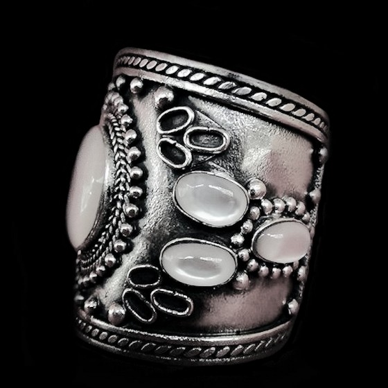 Armband aus Sterling/925 Silber, von Hand ziseliert und mit Halbedelsteinen besetzt.