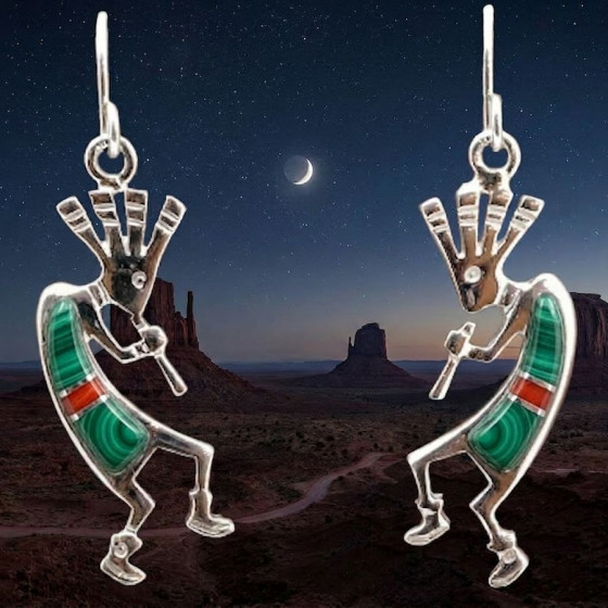 Ohrringe aus Sterlingsilber/925er-Silber und Mosaik aus Halbedelsteinen, die den Sonnengott Zuni darstellen.