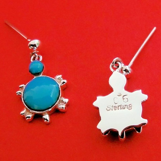 Diese Ohrringe aus Sterlingsilber mit Kaktusmotiv hängen an einem ovalen, echten blauen Türkisstein (ca. 0,6 x 0,8 cm), der als Ohrstecker dient. Sie symbolisieren die Schönheit und Widerstandsfähigkeit der Wüste und vereinen auf harmonische Weise Tradition und von der Natur inspirierte Eleganz. Ein bezauberndes Schmuckstück für jede Sammlung.