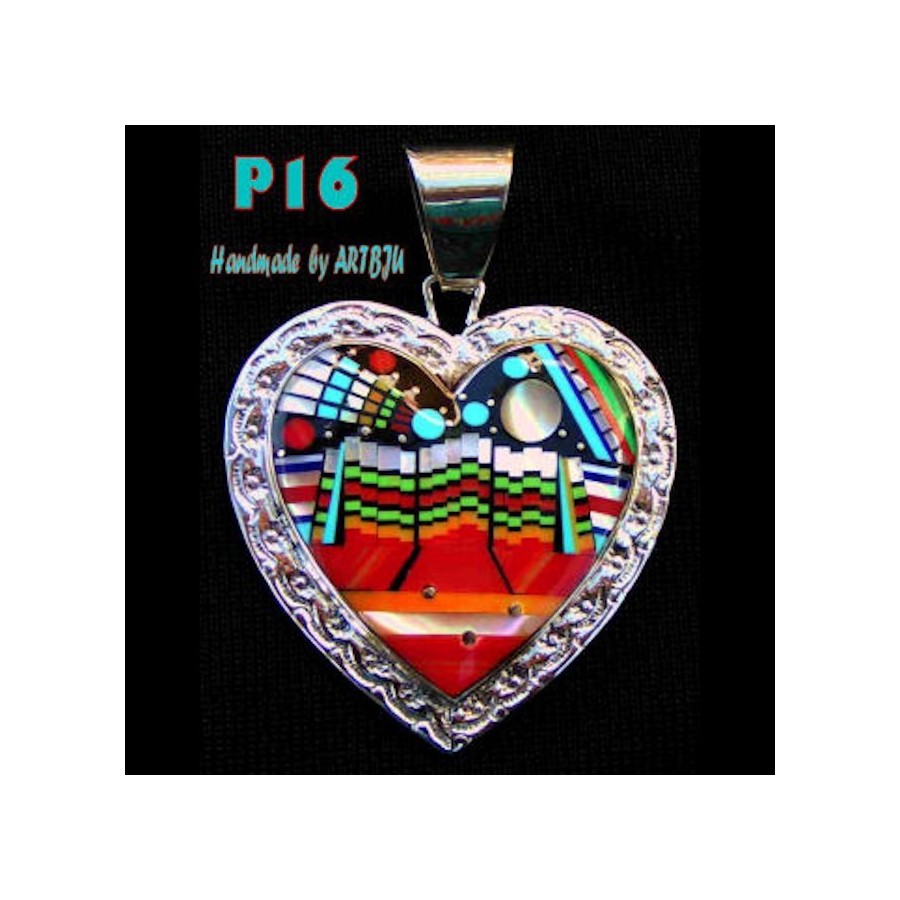 Anhänger aus Sterling/925er Silber, in Form eines Herzens geschnitzt und mit mehrfarbigen Steinen, einschließlich Opal, besetzt, die das nächtliche Monument Valley darstellen