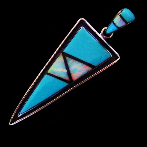 Handgemeißelter Anhänger aus 925er Silber in Form einer Pfeilspitze und einer Schattenbox.