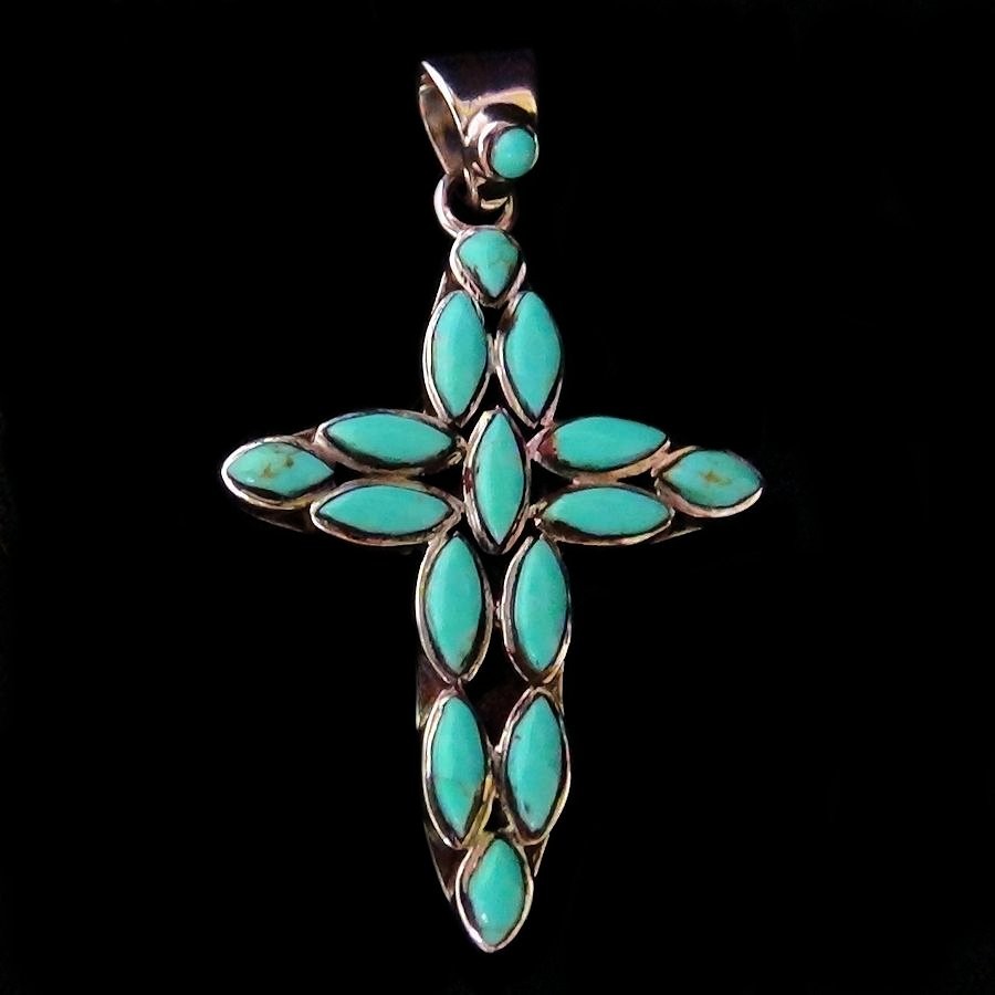 Anhänger aus 925er Silber, besetzt mit mehreren kleinen Türkisen. An der Öse befindet sich ein kleiner Türkis.
