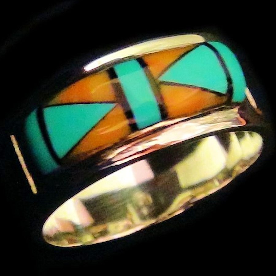 Gemischter Ring aus Sterling/925 Silber, besetzt mit Türkis und Koralle.
