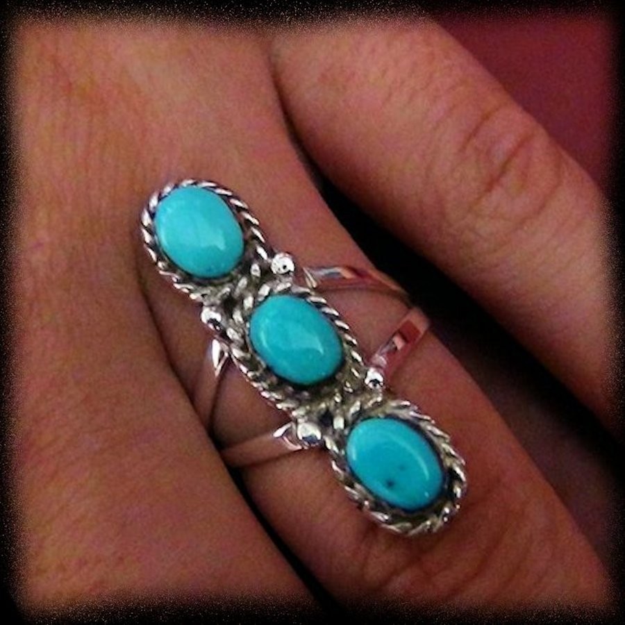 Ring aus Sterlingsilber, besetzt mit 3 Steincabochons, deren Farbe Sie bei der Bestellung auswählen.