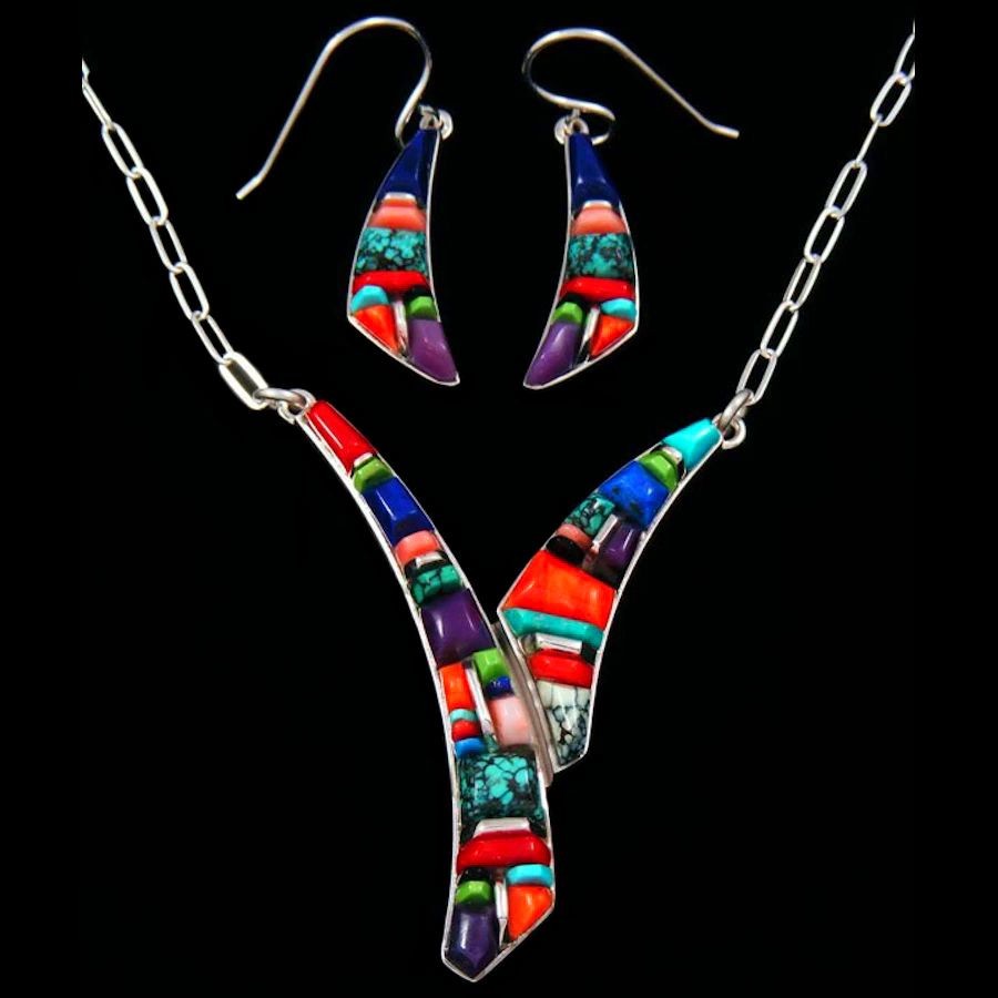 Navajo-Halskette mit Pflasterstein-Intarsien und mehrfarbigen Steinen – ein handgefertigtes Schmuckstück von authentischer Eleganz. Der farbenfrohe Mosaikanhänger verleiht jedem Outfit eine einzigartige, schicke und charaktervolle Note.