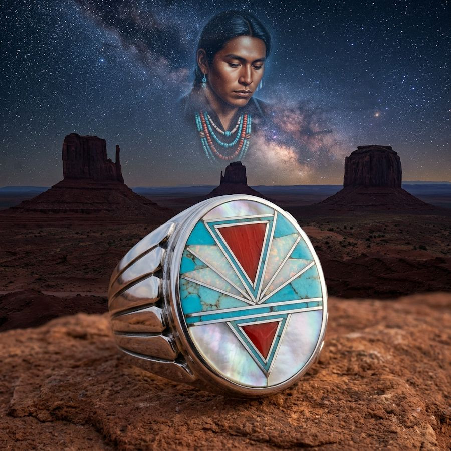 Sterlingsilber Ring für Herren mit braun Türkis und Opal.