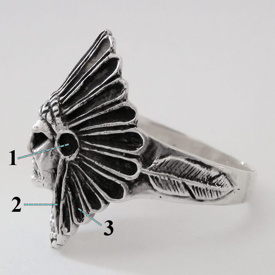 Personalisieren Sie Ihr Schmuckstück, indem Sie die Farben dieses Indianerhäuptling-Rings aus Sterlingsilber auswählen!