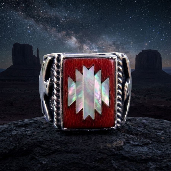 Siegelring aus 925 Silber mit Navajo- und Thunderbird-Muster Mod.7