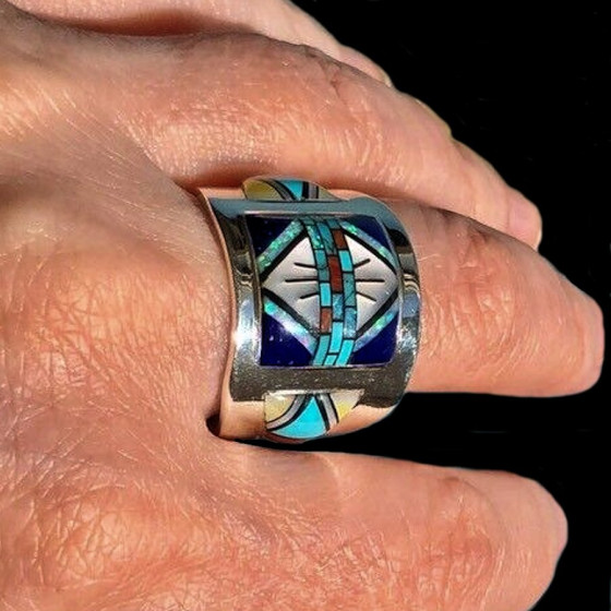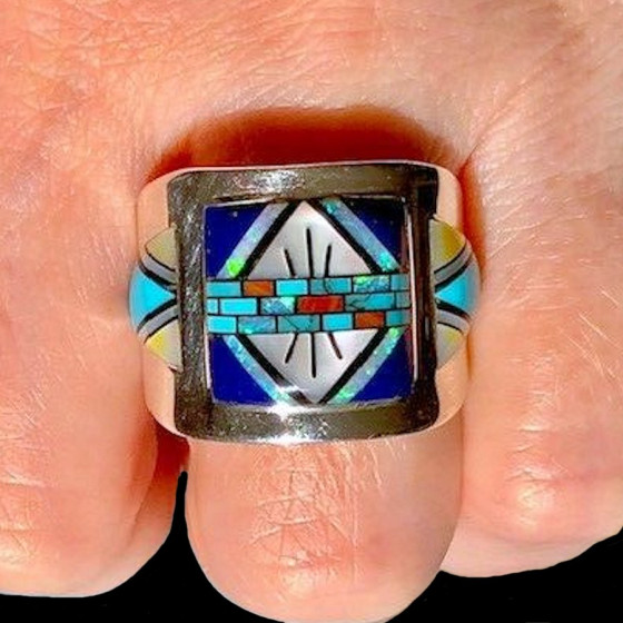Sterlingsilberring mit Halbedelsteinen und Opalit.