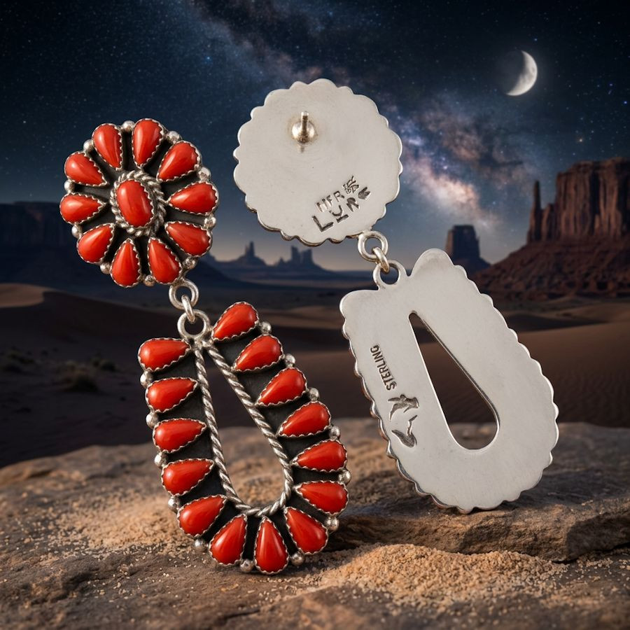 Verleihen Sie Ihrem Stil mit der zeitlosen Eleganz indianischer Handwerkskunst eine besondere Note. Unsere Navajo-Tropfenohrringe vereinen die edle Optik von Sterlingsilber mit dem strahlenden Funkeln sorgfältig ausgewählter Edelsteine.
