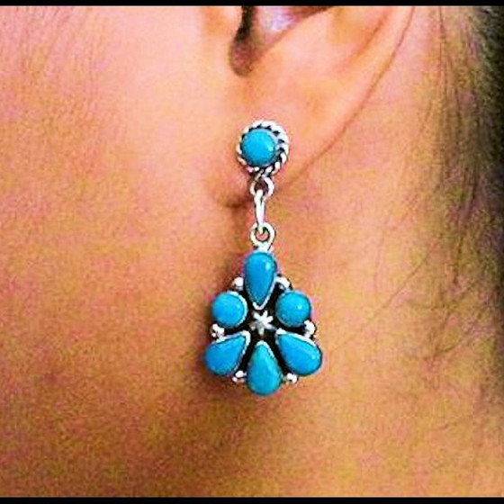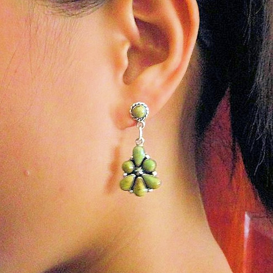 Paar Ohrringe aus Sterlingsilber/925, bestehend aus 7 Halbedelstein-Cabochons, deren Farbe Sie bei der Bestellung auswählen.