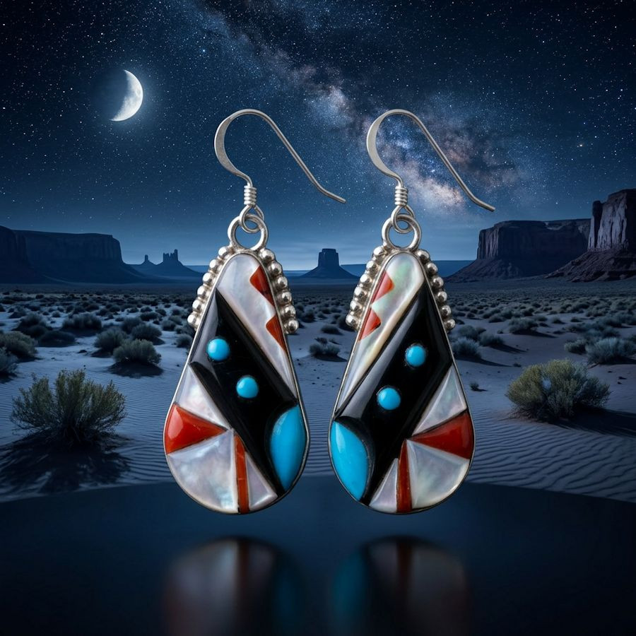 Verleihen Sie Ihrem Look mit diesen tropfenförmigen Ohrhängern, wahren Meisterwerken indianischer Handwerkskunst, das gewisse Etwas. Jedes Paar vereint traditionelles Erbe mit elegantem, modernem Design.
