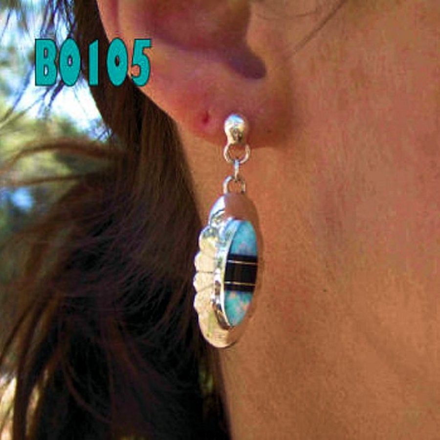 Ohrringe aus Sterling-/925er-Silber, besetzt mit Jet Black und Opal, dessen Farbe Sie bei der Bestellung auswählen.