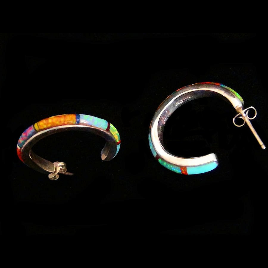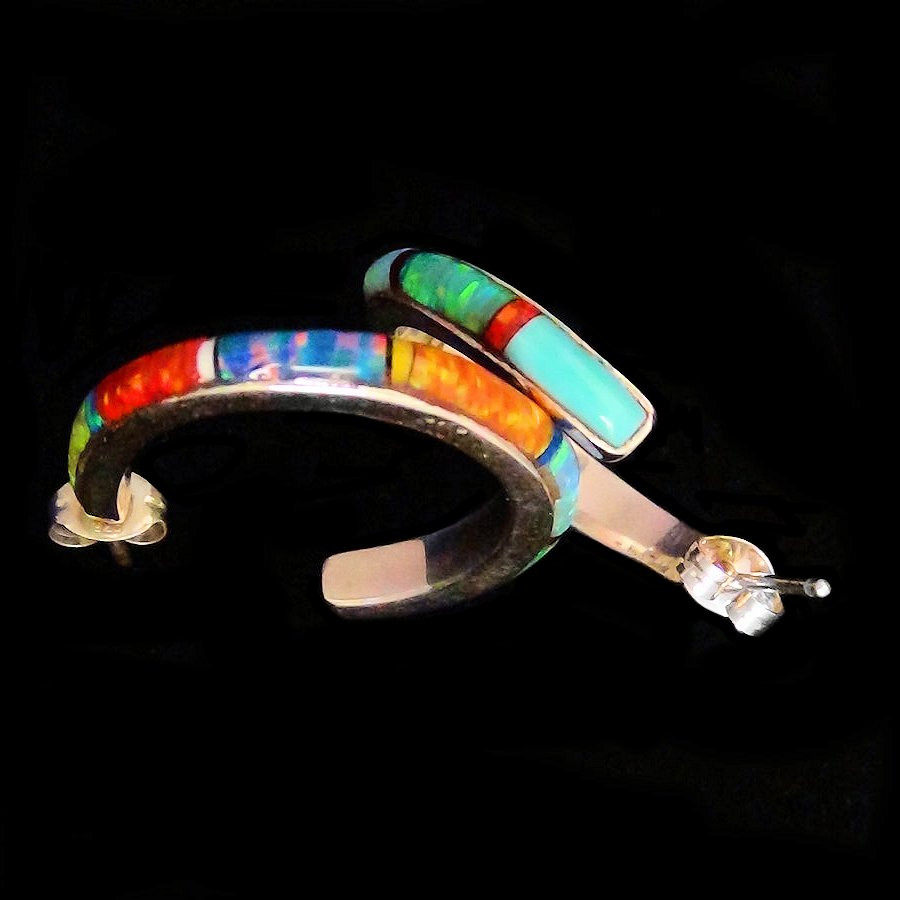 Sterling silber Ohrstecker mit opal mosaïk. Breite 4mm.