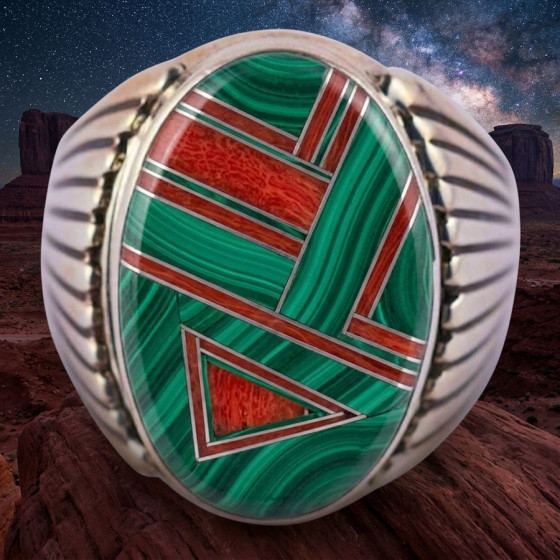Navajo-Zuni-Silberring, Pfeilspitze, Kanaleinlage, Farbe nach Wahl