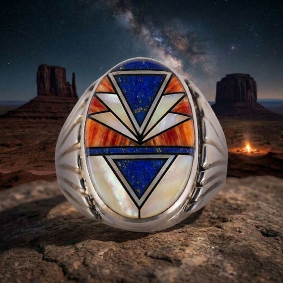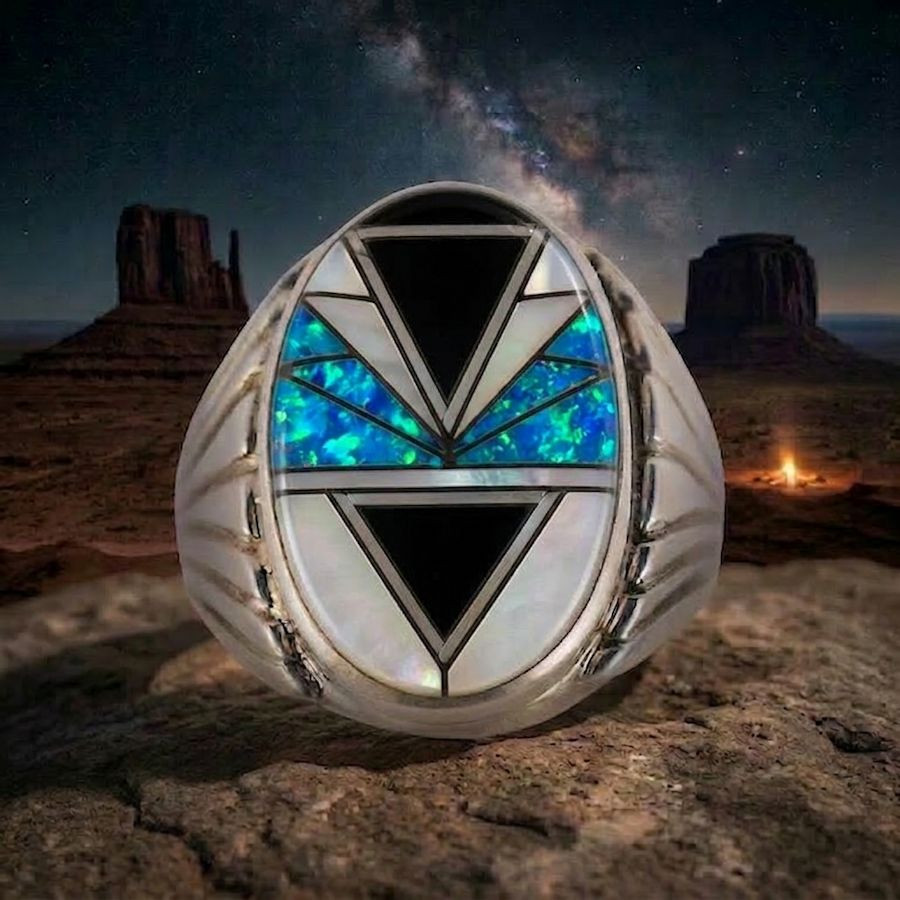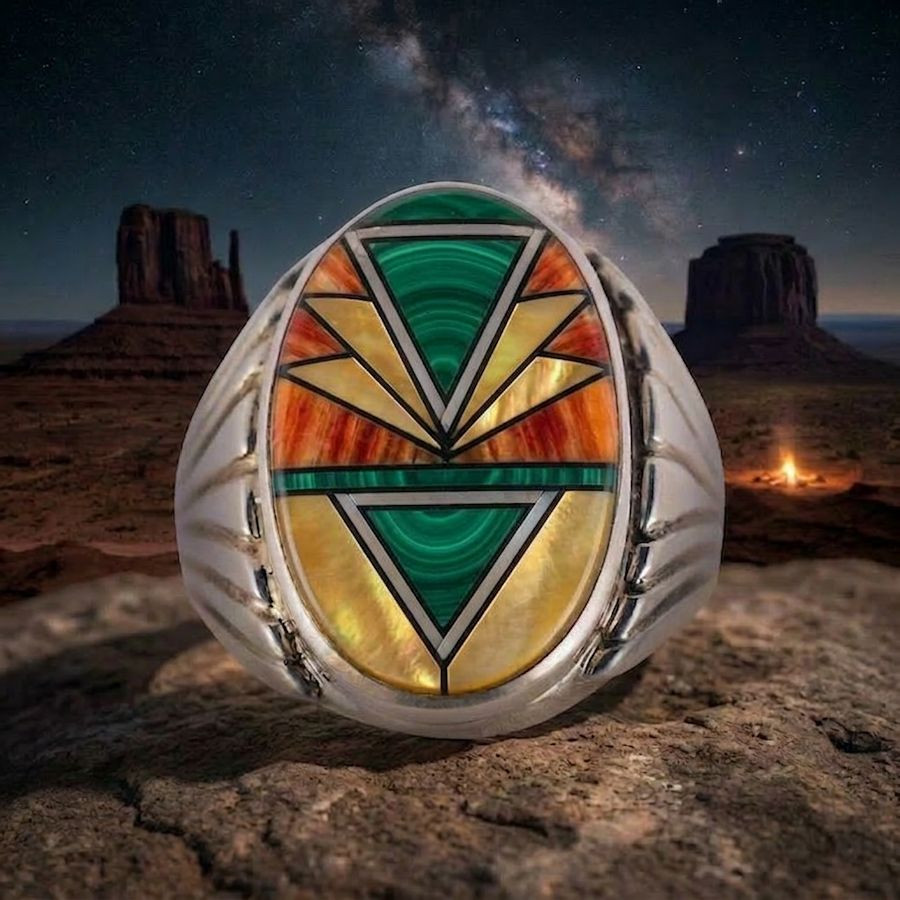 Handgefertigter ovaler Ring aus Sterlingsilber (925), verziert mit einem Pfeil aus Halbedelstein.