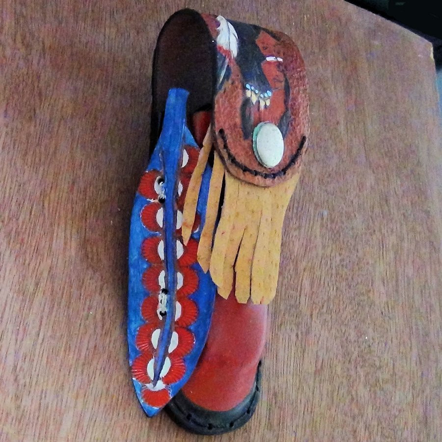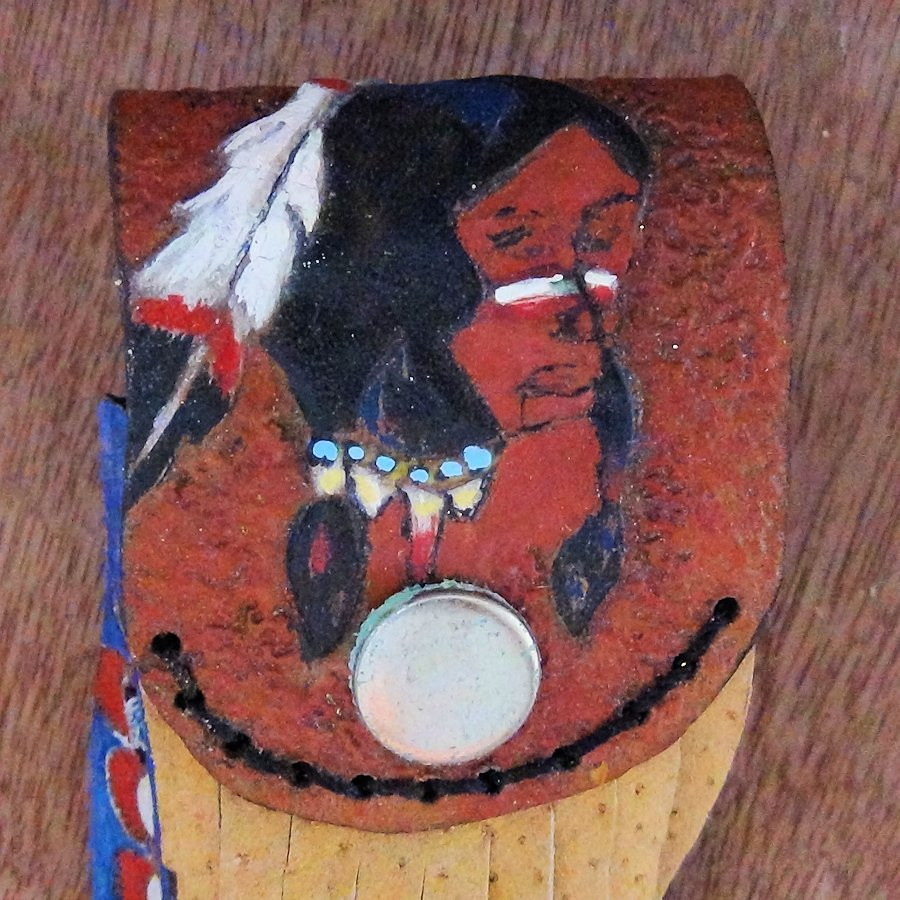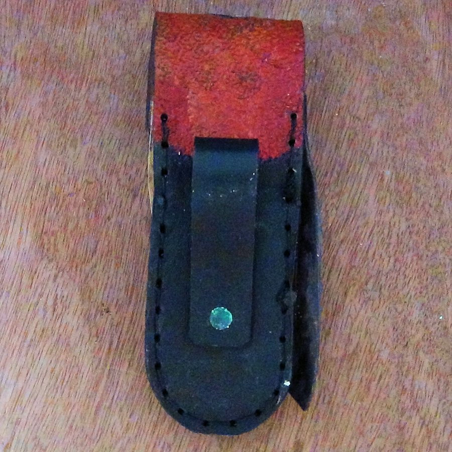 Geprägte und handbemalte Lederscheide für ein Messer von maximal 11,5 cm.