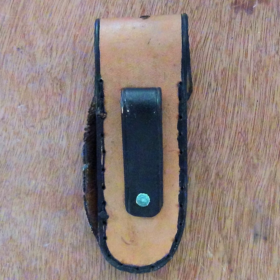 Geprägte und handbemalte Lederscheide für Modell 1-Messer von unserer Website.