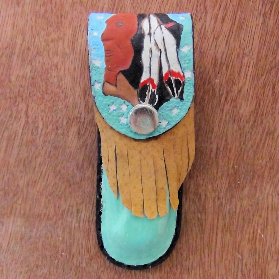 Geprägte und handbemalte Lederscheide für Modell 1-Messer von unserer Website.