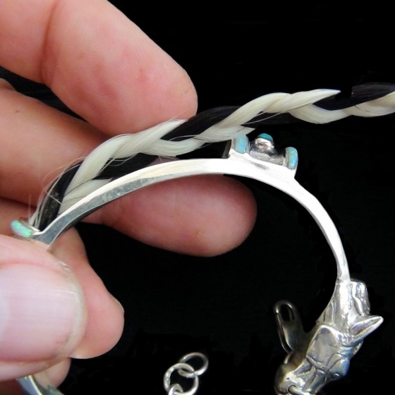 Dieses Armband wird nach Ihren Handgelenkmaßen gefertigt. Es besteht aus einer Rinne, in die Sie Ihr Rosshaar – oder ein anderes Tier – legen.
