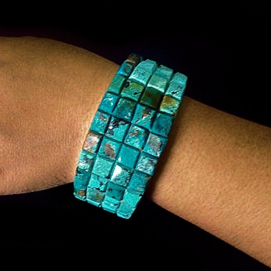 Sterling Silver/925 bracelet, adorned with turquoise (Arizona), outside and inside. Safety chain.