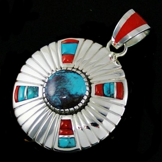 Sterling silver pendant with dozens of semi precious stones forming a stunning Inlay.