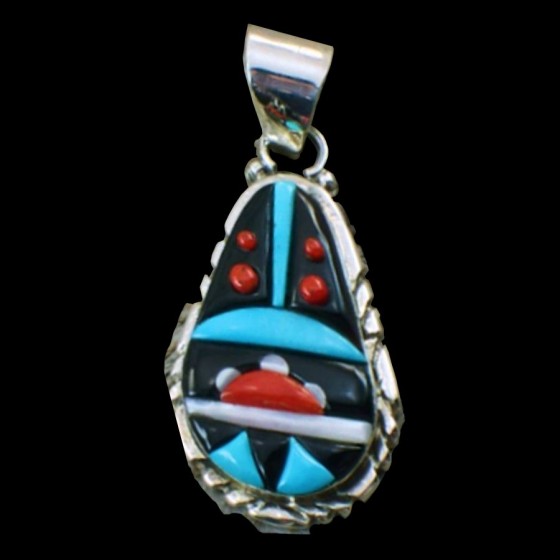 Sterling/925 Silver pendant, with turquoise, mother-of-pearl and red coral.