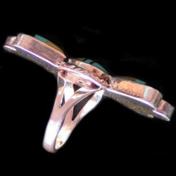 Native American ring in Sterling Silver for women measuring 4 x 2.2 cm and set with small turquoise cabochons and an oval of lapis Lazuli.