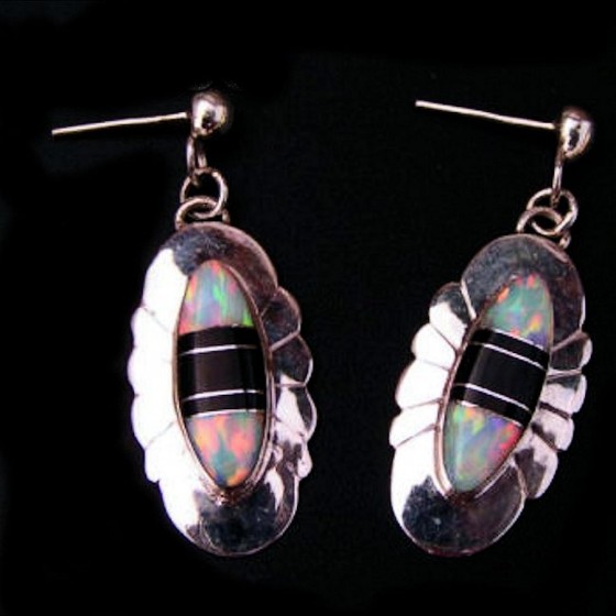 Zuni Sterlingsilver Earrings with semi-precious stones Inlay.Black Jasp and Opal Color Choice Sterlingsilver Earrings