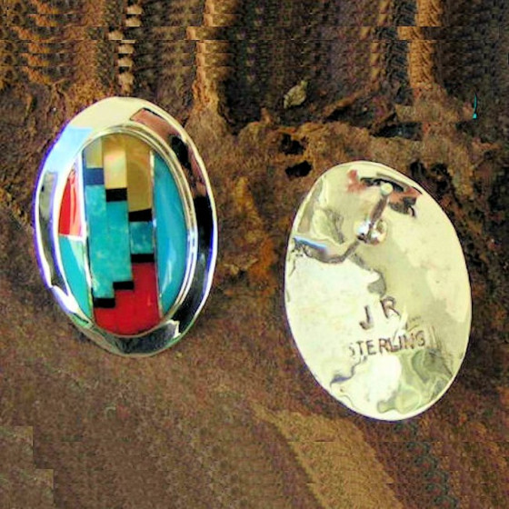 Zuni Sterlingsilver Earrings with semi-precious stones Inlay.Active filters
