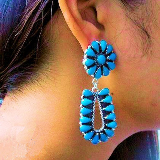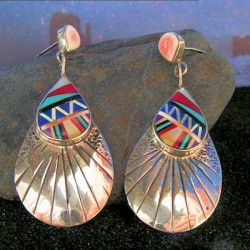 Sterling silver earrings Zuni Inlay with semi precious stones. They measure approximately 4 x 1 cms.