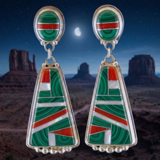Sterling silver earrings Indian cross with a Inlay of semi precious stones.