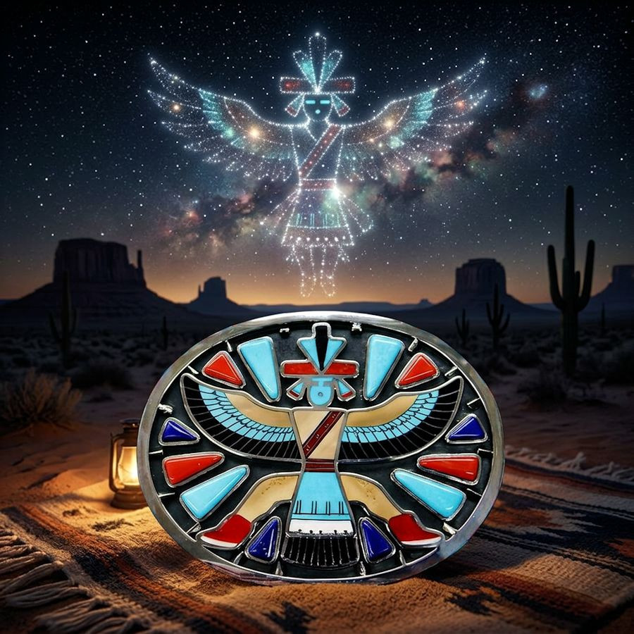 Elevate your style with this authentic Native American belt buckle, a masterpiece of Navajo craftsmanship. Combining high-quality 925 sterling silver with powerful spiritual symbolism, this piece is a true wearable work of art.