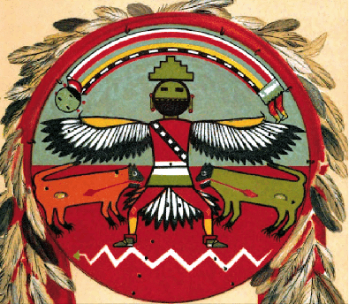 The Zuni Knife-wing god A-tchi-a la-to-pa is a celestial being, with a combined man-bird form.