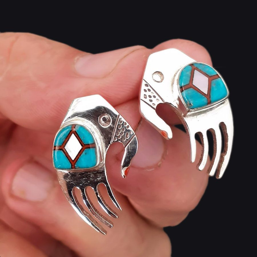 Sterling silver earrings with semi precious stones Inlay like turquoise, coral, mother of pearl.