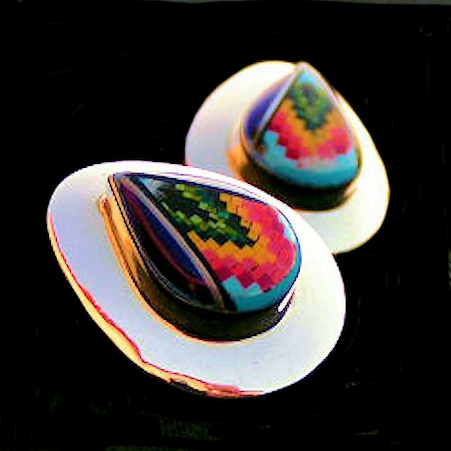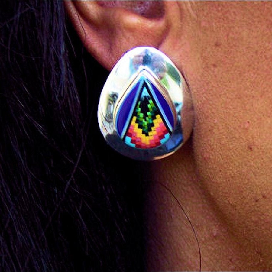 Sterling Silver Earrings set with multi-colored stones arranged in micro Inlay.