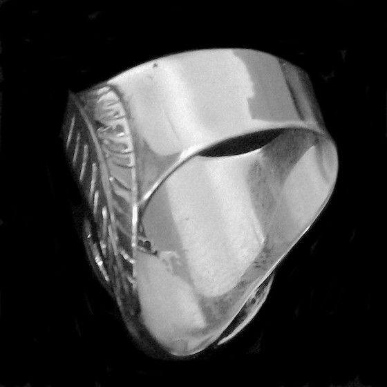 Ring in Sterling/925 Silver, with a chiseled feather on each side, with a cabochon in the center - Select your color using the color selector.