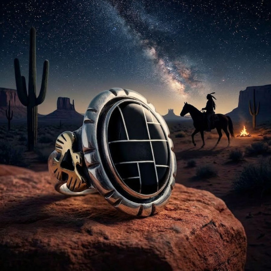 Sterling Silver ring set with a semi-precious stone of your choice, featuring a thunderbird on the sides.