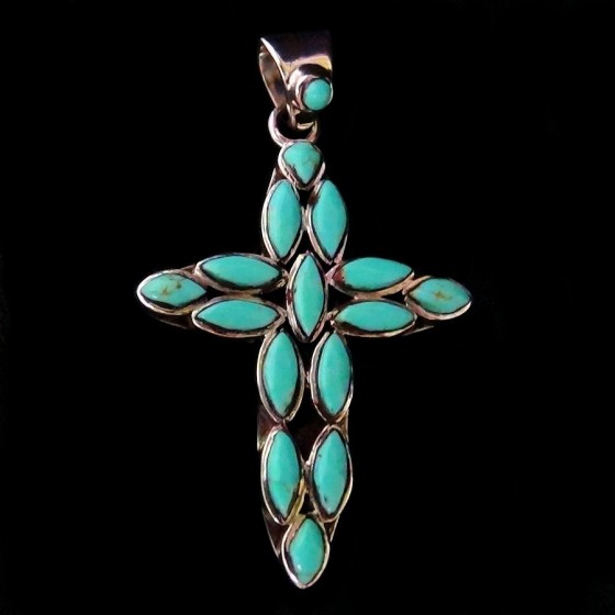 925 silver pendant set with several small turquoises. There is a small turquoise on the bail.