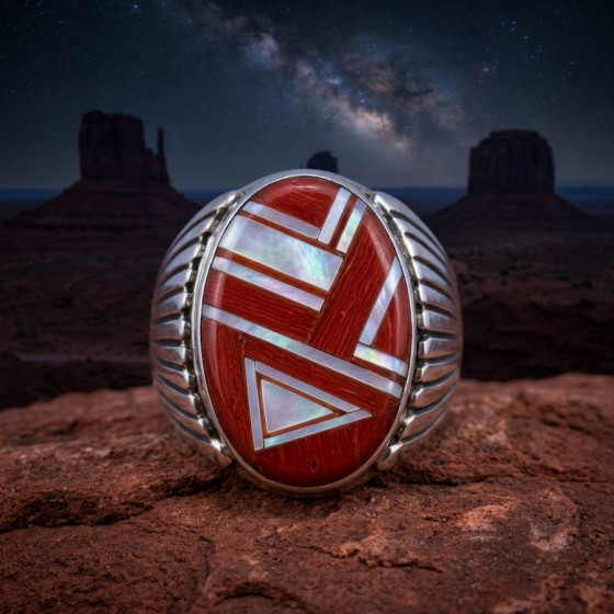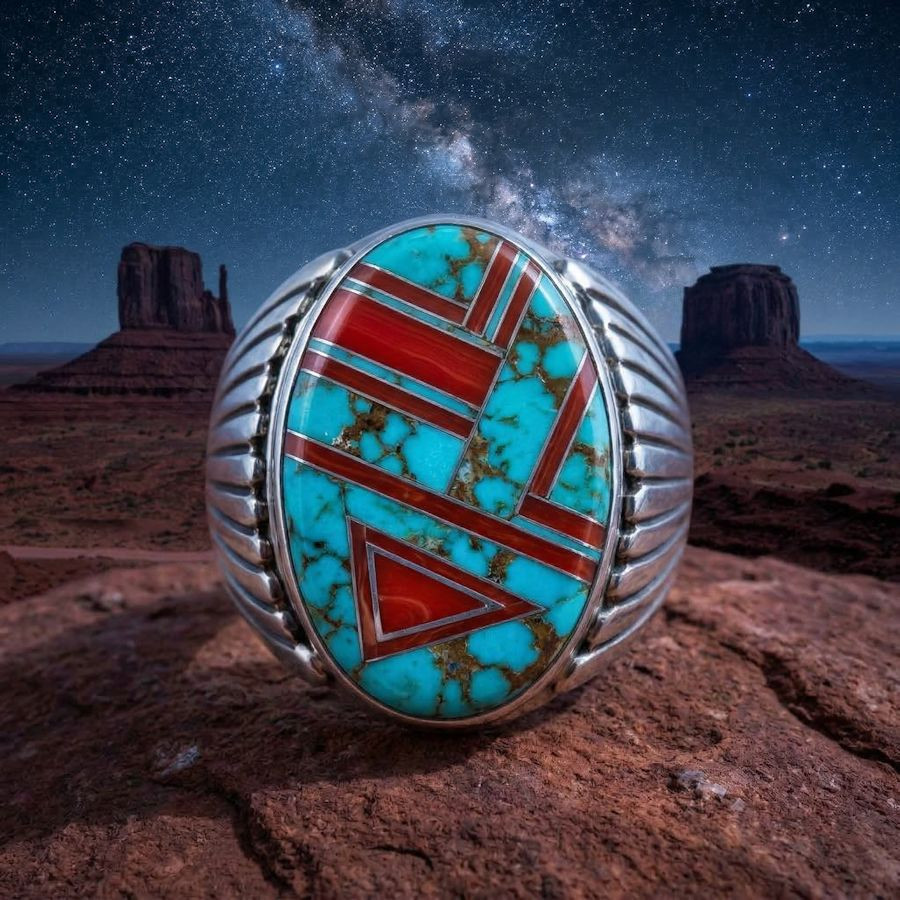 Navajo Zuni Silver Ring, Arrowhead, Channel Inlay, Choice of Color