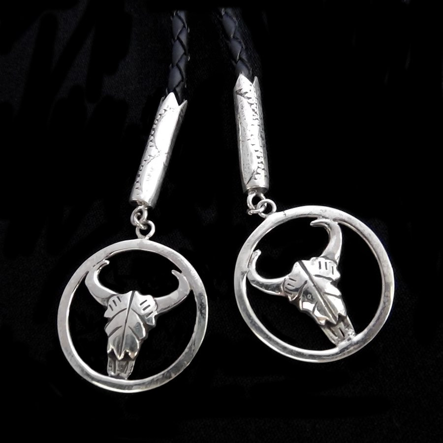 Pair of Silver Buffalo Skull Bolo Tie End Caps