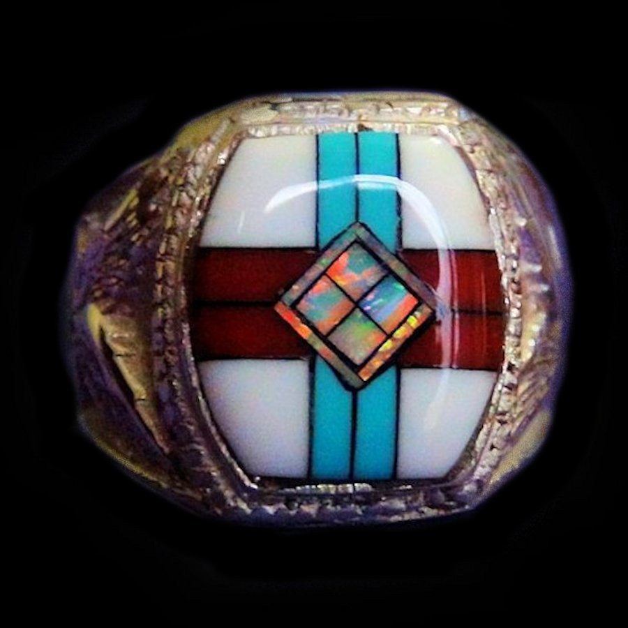 Stones: Coral, Mother-of-pearl, Turquoise, Opal.