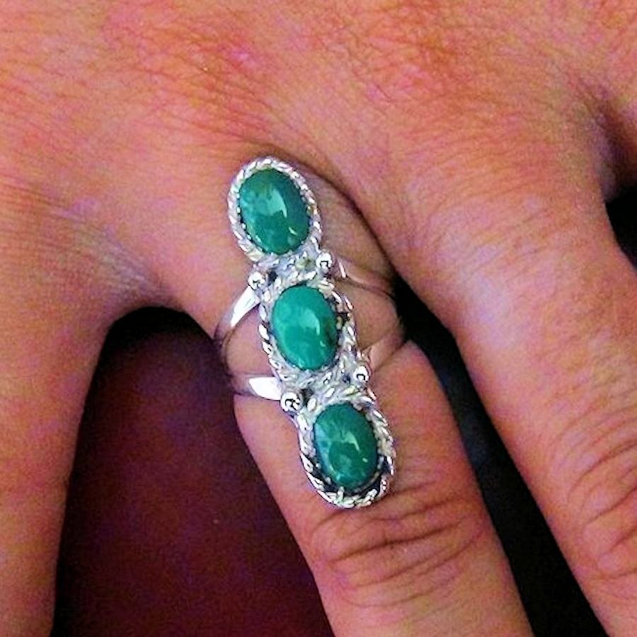 Sterling Silver ring set with 3 stone cabochons whose color you choose when ordering.