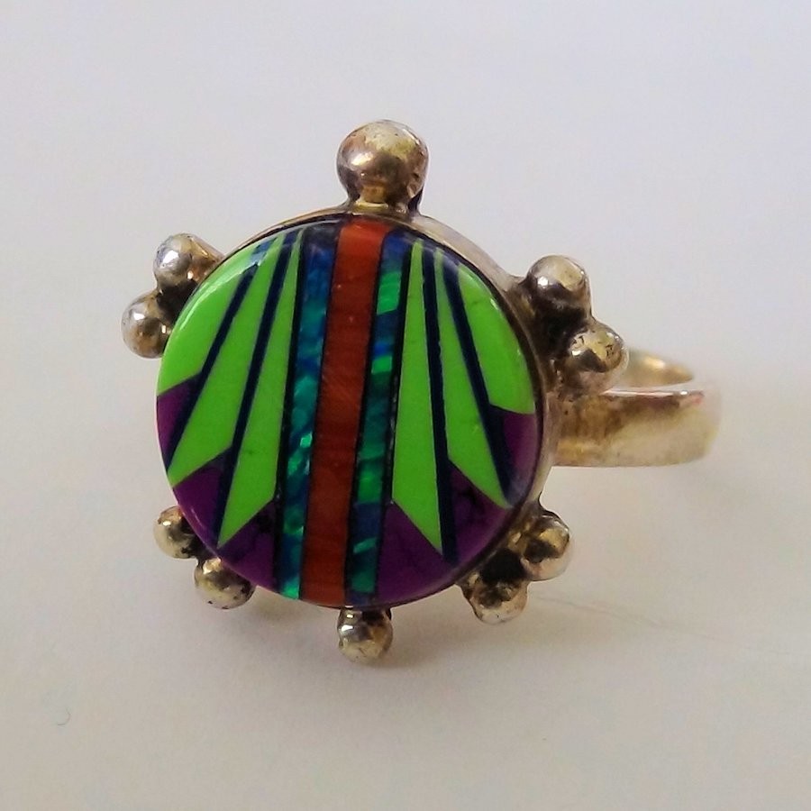 Sterling/925 Silver ring set with opal and multicolored stones.