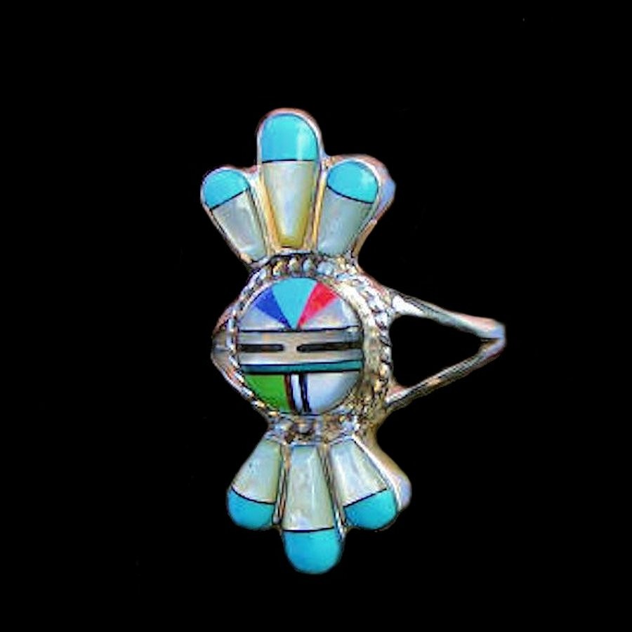 Turquoise, Mother of Pearl, Zuni Sungod Face Ring Southwest Style