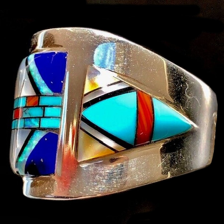Anillo de plata de ley con piedras semipreciosas y opalita engastadas.