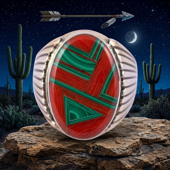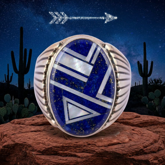 Este anillo de plata de ley 925 está engastado con piedras semipreciosas y presenta un diseño de punta de flecha. Puedes elegir el color de las piedras al realizar tu pedido.