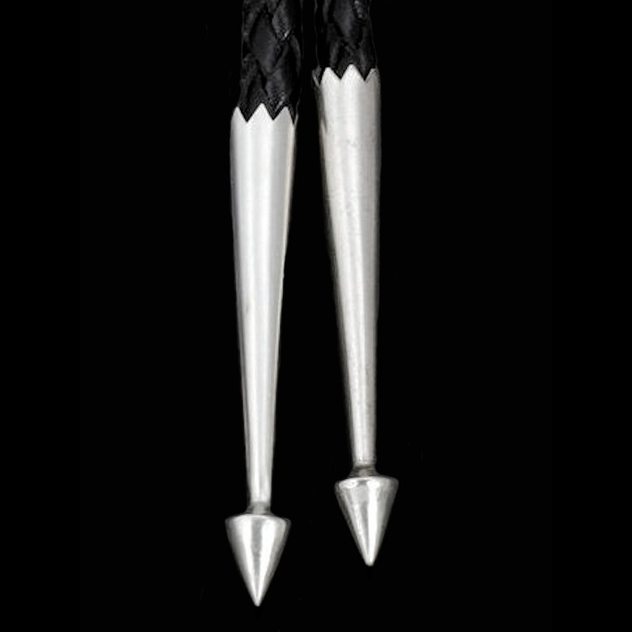 Par de terminales para cordón de bolo en plata de ley, cincelados a mano.