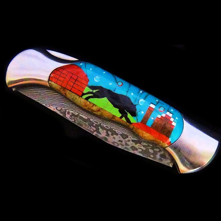Navaja, hoja de acero, mango engastado con piedras.