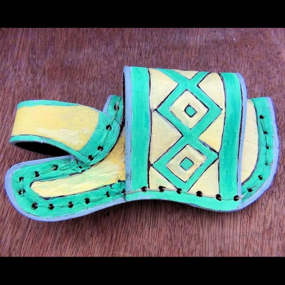 Funda horizontal en piel repujada y pintada a mano para cuchillo con una longitud máxima de 12 cm.